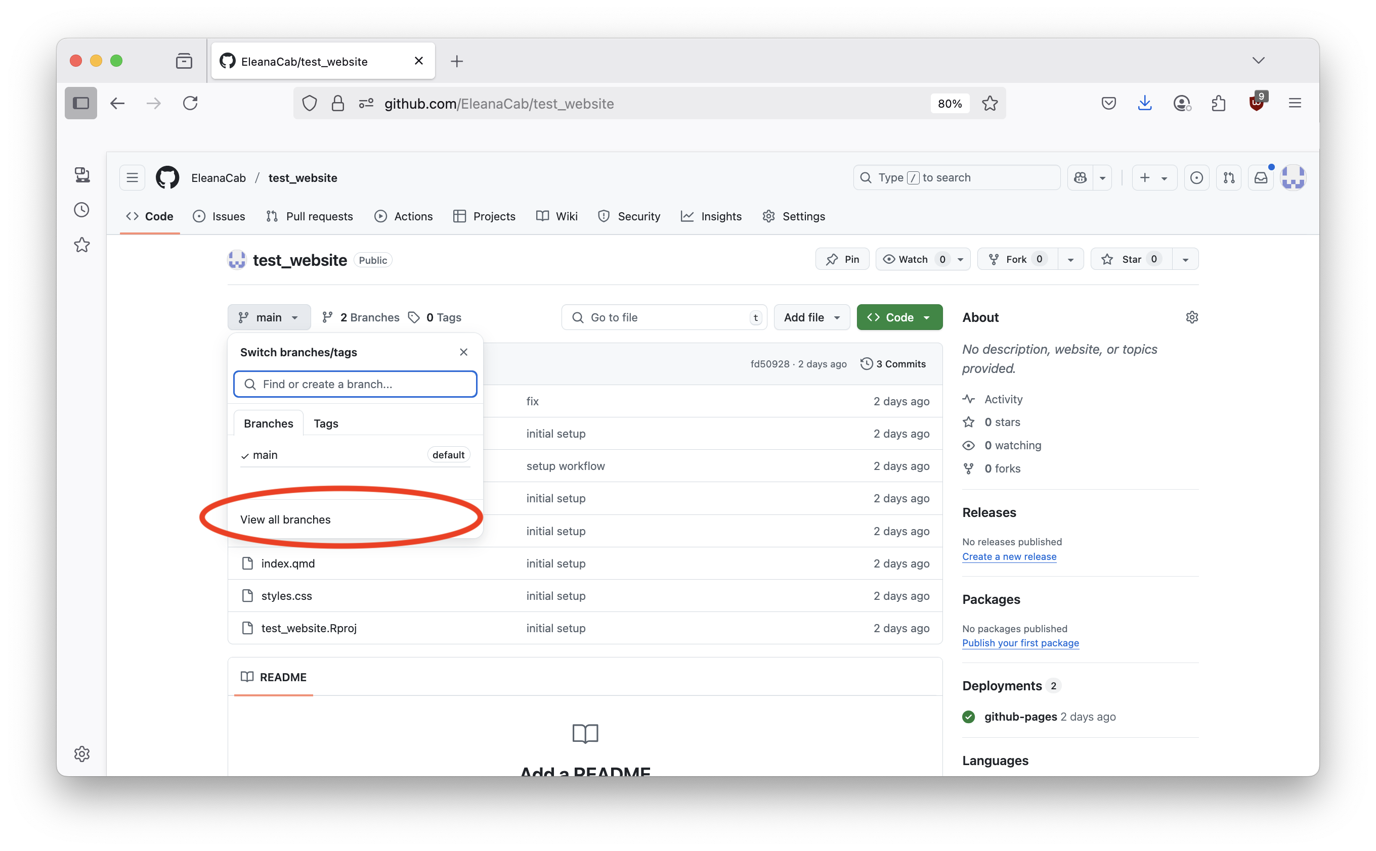 In Github website refresh and view all branches in the repository by following the steps below: