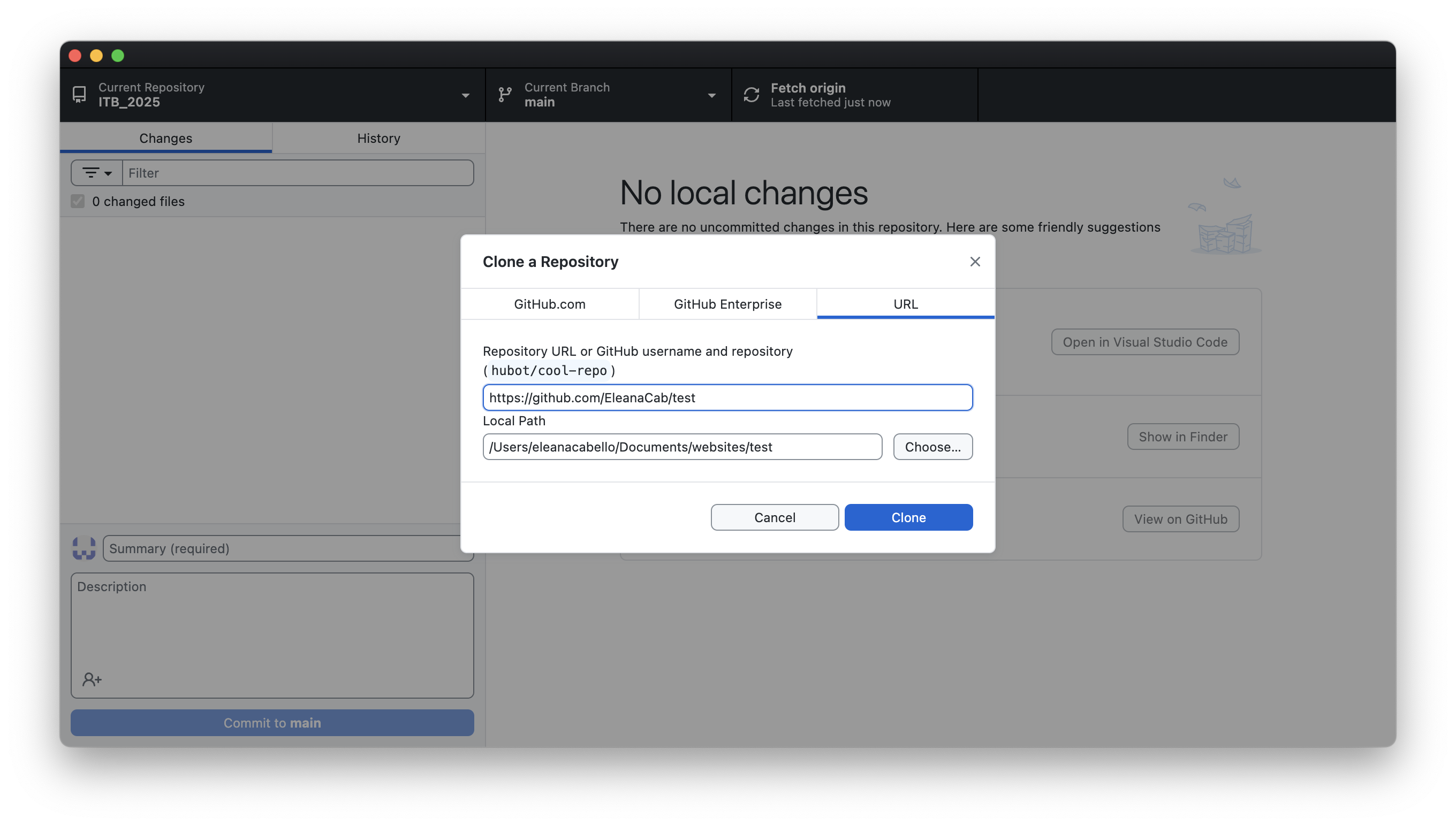 Once in Github Desktop, pick what directory you would like to store the repository locally. This action will create a remote repository connecting it to the one you have online.