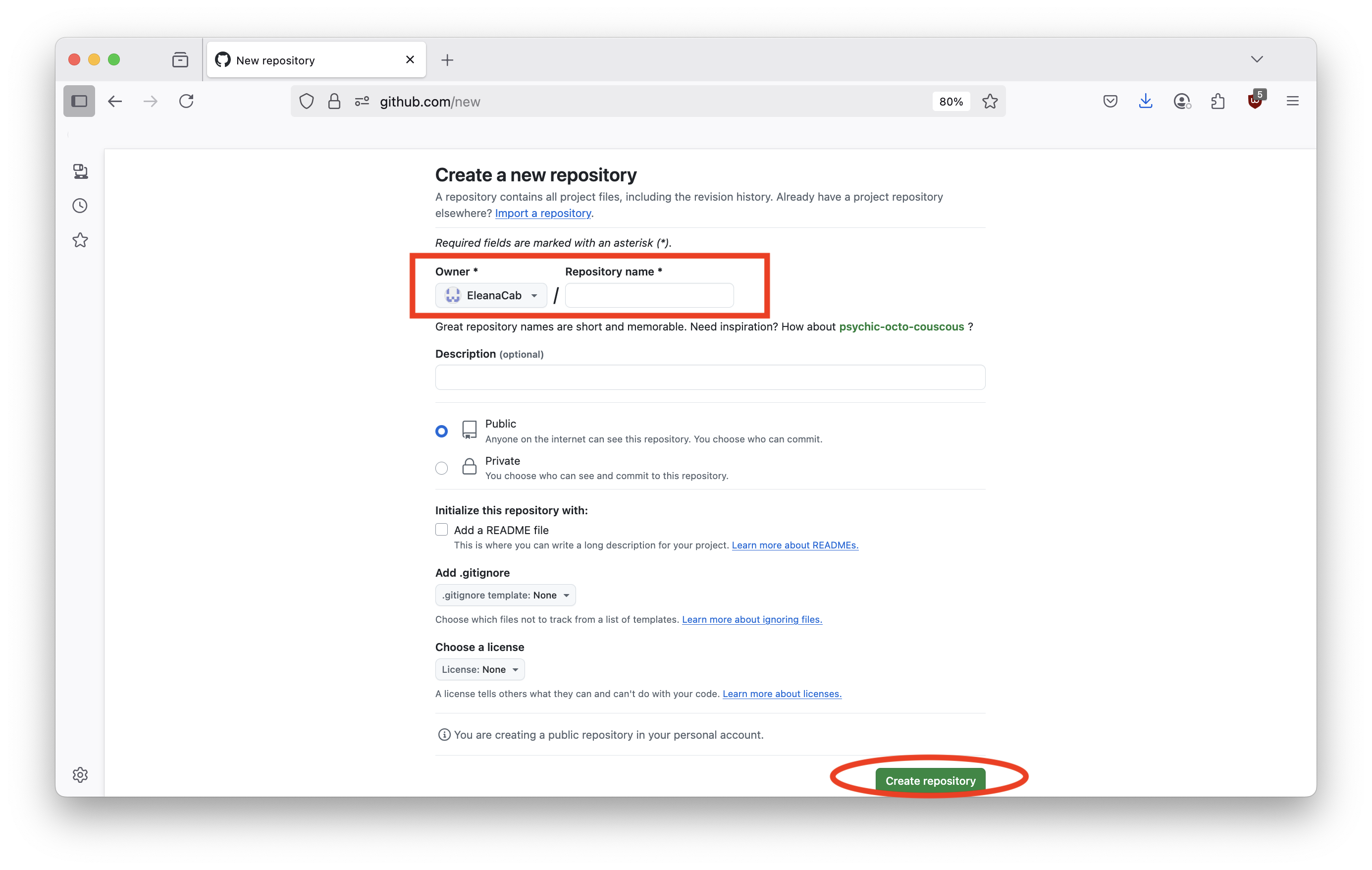 Name your repo with purpose (your name for a personal website, a project name, a course name, etc.)
