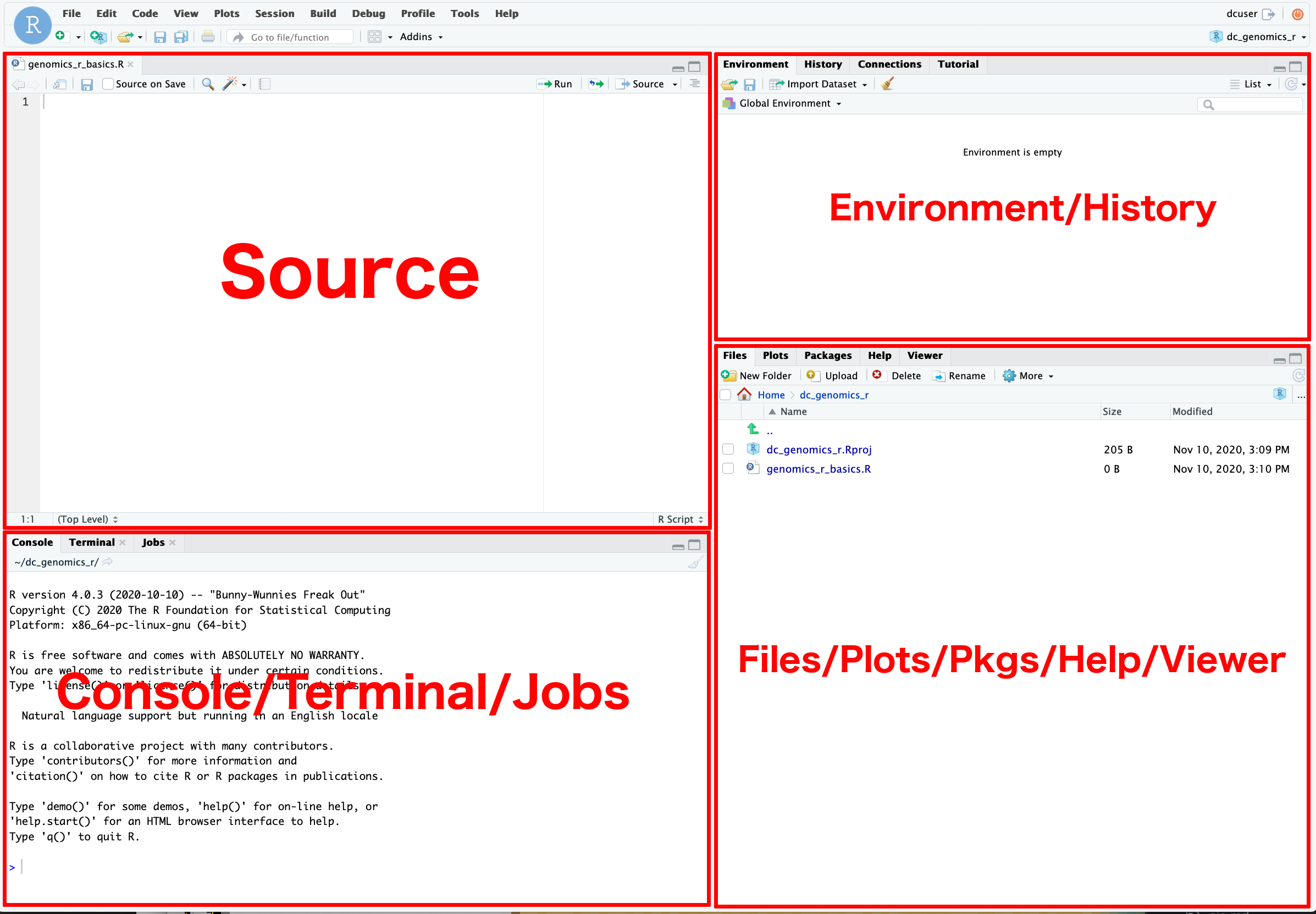 - One day, you will need to quit R, go do something else, and return to your analysis later. Creating an